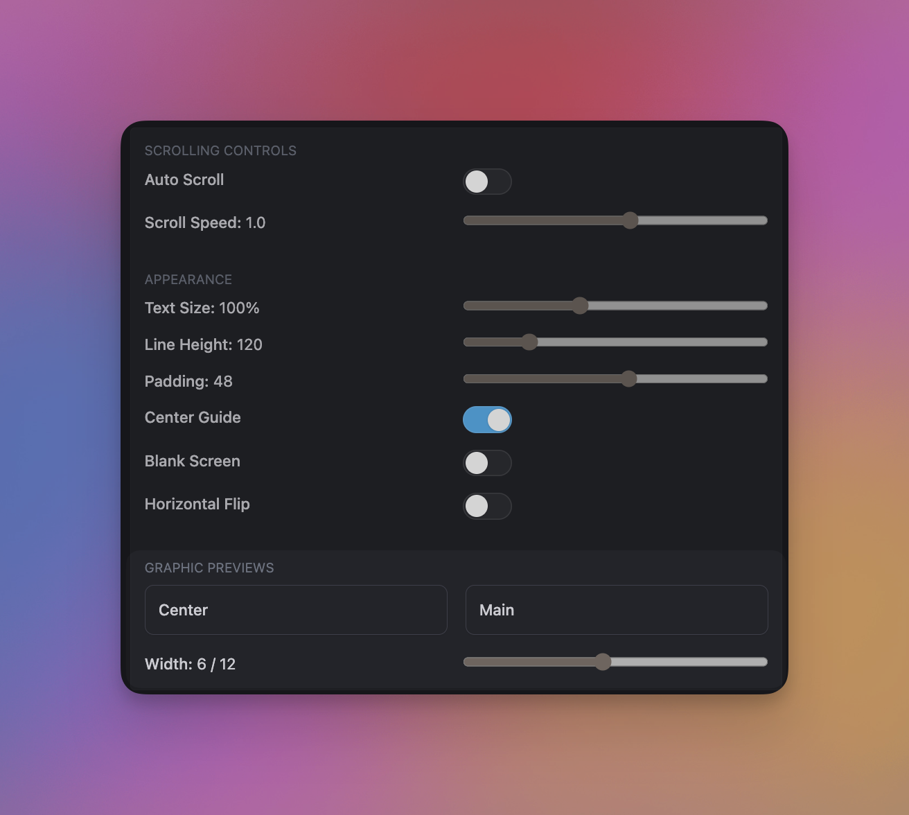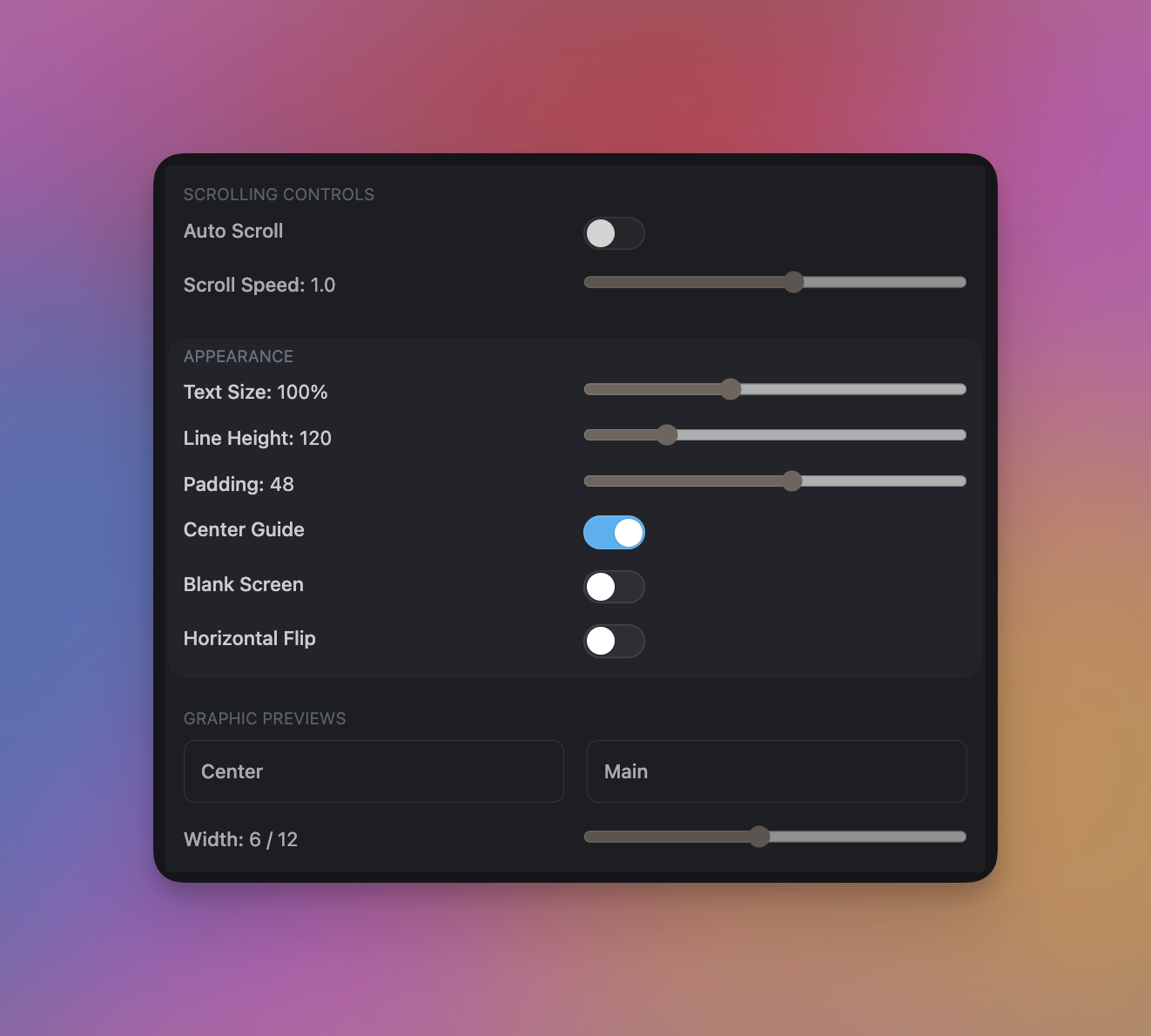 - Center Guide: Show center reading markers to help your talent stay focused on the correct position