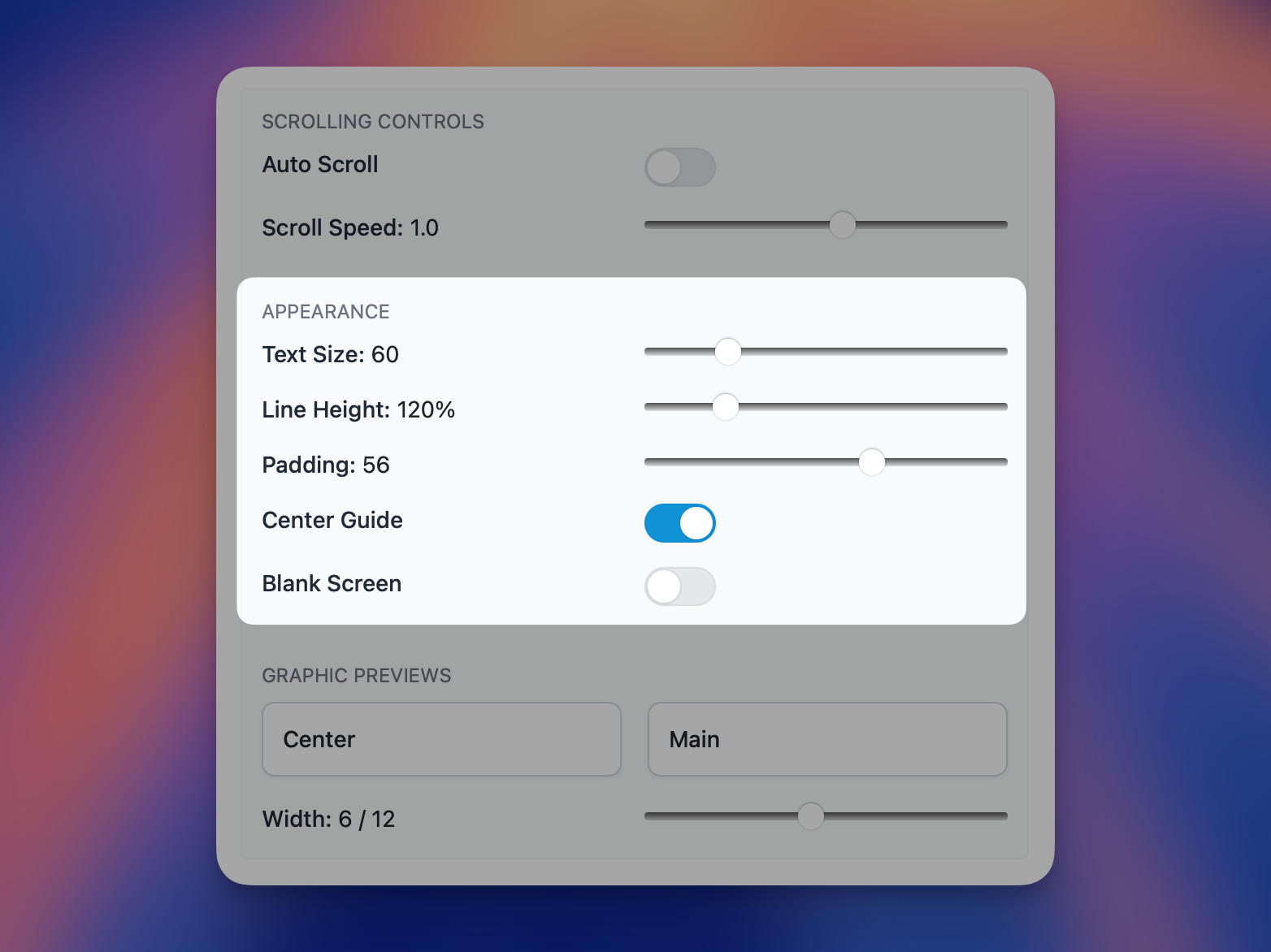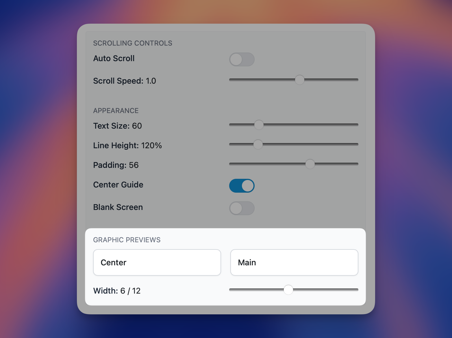 - Width: Adjust how large the graphic previews appear in the teleprompter