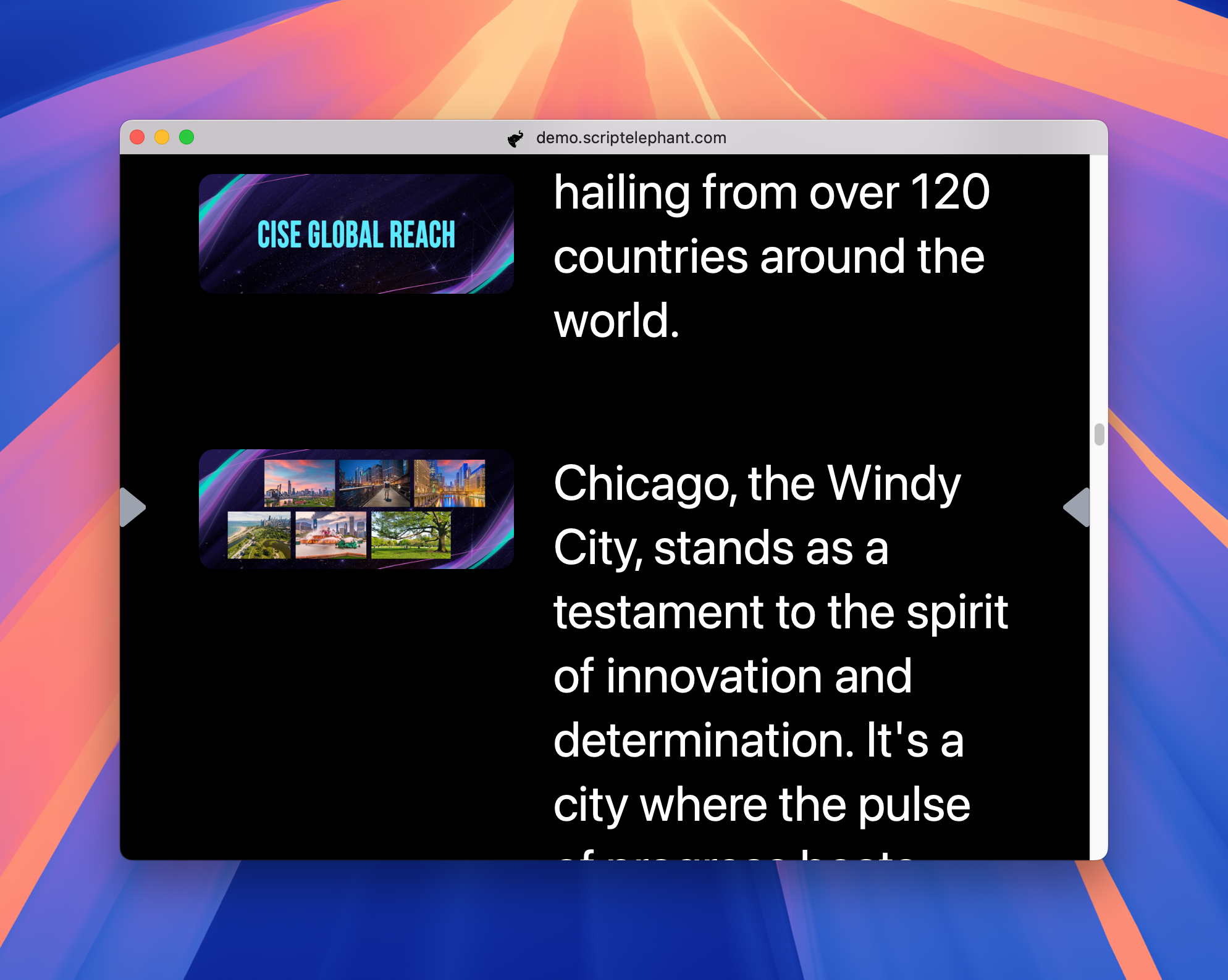 Script Elephant's teleprompter mode also includes native support for any graphics you may have scripted during your session.